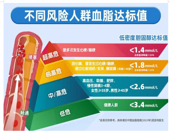 根据2023年血脂指南,冠心病人群属于极高危群体,发生心血管不良事件的风险高,一定要认准达标值,坚持服药,控制血脂长期达标!如果有任何不适,一定要及时就医!