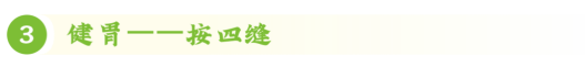 四缝穴是消宿食、化积滞的专属穴。取穴位置在手指,左右手第2、3、4、5指(掌心侧)第2节横纹中央点。最好用大拇指掐按,一般按10~20次效果显著。
